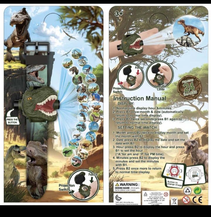 ساعت مچی دیجیتال پروژکتوری طرح دایناسور 24 اسلایدی