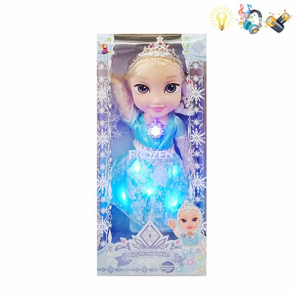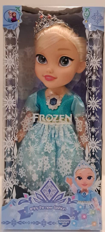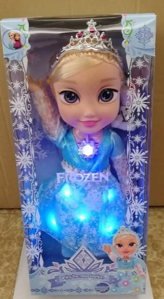 عروسک موزیکال السا با روشن کردن دکمه روی سینه موزیک و چراغ لباس روشن می شود. تقریبا ۳۵ سانتیمتر کیفیت بسیار عالی