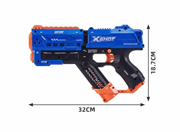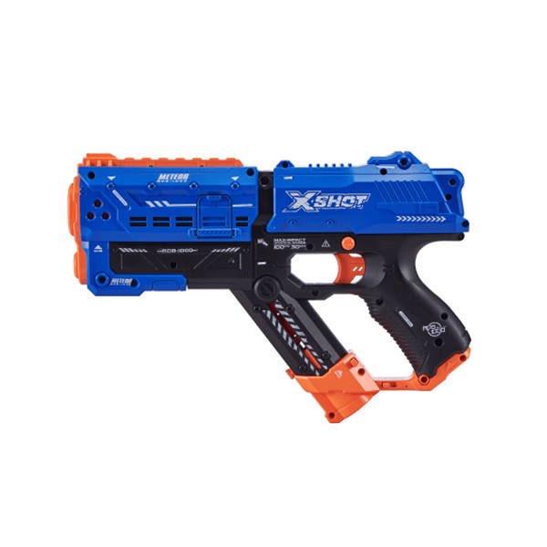 لذت بازی با تفنگ های ساچمهای رو این بار با تیرهای فومی بیخطر تجربه کنید. این مدل از سری Chaos تفنگهای X-Shot قابلیت نگه داری 6 تیر را دارد و با هر بار شلیک 1 تیر پرتاب میکند. برای پرکردن این اسلحه، ضامن نارنجی رنگ رو به سمت پایین بکشید، تیرها رو از روزنه وارد کنید و بعد دکمه کنار روزنه رو فشار بدین. حالا با کشیدن گلنگدن و فشردن ماشه، تفنگ شما آماده شلیک است. شما همچنین میتونید با دکمه های کنار ماشه، گلنگدن و ماشه رو قفل کنید تا هیچ کس نتونه از تفنگ شما استفاده کنه.
