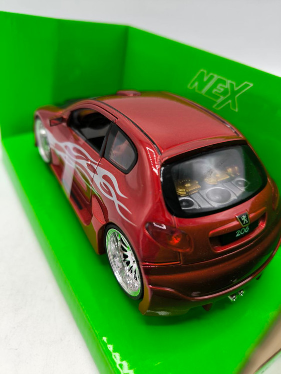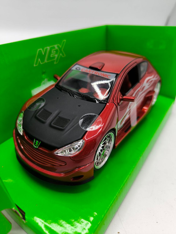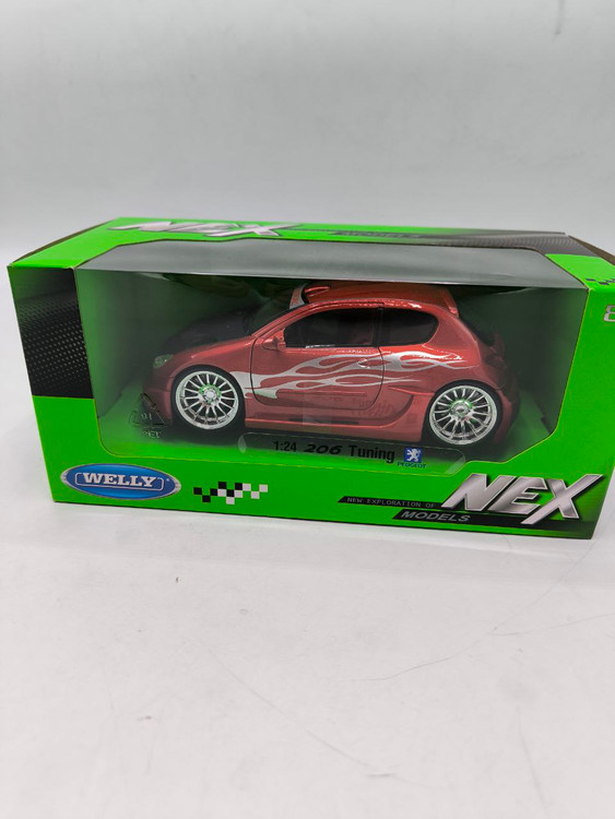 ماکت فلزی ماشین اسباب بازی پژو 206 تیونینگ شده (PEUGEOT 206 TUNING) بزرگ 1:24 ساخت WELLY قرمز (کاپوت کربنی)