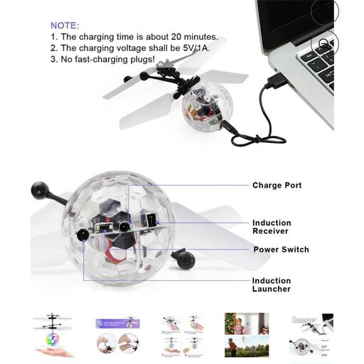 این گوی بسیار دوست داشتنی را به راحتی می توان در فضای اتاق به پرواز درآورد و نگران برخورد آن با سقف و یا لوستر هم نبود، چراکه بعد برخورد این گوی زیبا با این اجسام و یا دست و صورت کودکان نمی تواند به آنها آسیب وارد کند و خطرساز شود، این گوی کم نظیر به محض برخورد با اشیاء بصورت اتوماتیک خاموش می شود. کنترل ارتفاع توسط سنسور زیر محصول با کف دست
