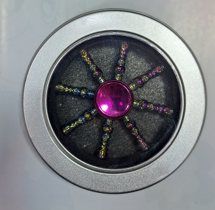 جنس : فلز اقلام همراه: به همراه جعبه فلزی اسباب بازیها تنوع بسیار زیادی دارند و بیشتر برای سنین ویژهای طراحی و تولید میشوند. محصول فوق برخلاف این اسباب بازیها دارای یک ویژگی منحصر به فرد است و آن بازهی سنی افرادی است که میتوانند از آن استفاده کنند. همانطور که اسپینر را میتوان در دست کودکان مشاهده کرد، میتوان آن را یک وسیلهی بازی برای بزرگسالان تلقی کرد. بازی با این وسیله نوعی مدیتیشن محسوب میشود و میتواند موجب آرامش اعصاب شود. با چرخاندن اسپینرها میتوانید برای مدت بسیار کوتاهی هم که شده از شر افکار مزاحم راحت شوید. اسپینر فوق دارای ساختاری فلزی بوده و همین موضوع موجب شده تا استحکام بالایی داشته باشد و بتواند به خوبی حرکت چرخشی انجام دهد. حرکت این محصول بسیار روان بوده و به دلیل اصطکاک پایینی که دارد میتواند در مدت زمان مناسبی به چرخش خود ادامه بدهد