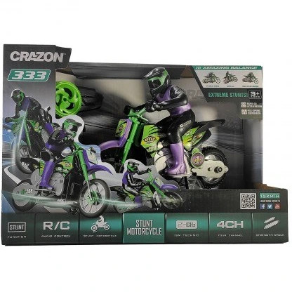 از سری وسایل کنترلی شارژی باکیفیت برند معتبر کریزون Crazon مدل 333 بوده که شامل موتور کنترلی شارژی های مختلف میباشد . موتورسیکلت تریل کنترلی شارژی کریزون Crazon 333 بدلکار Stunt از این سری بوده که بدنه محکم و آدمکی از جنس پلاستیک ABS داشته که این موتور را در سرعت 15 کیلومتر بر ساعت را از هر ضربه ای حفظ میکند .