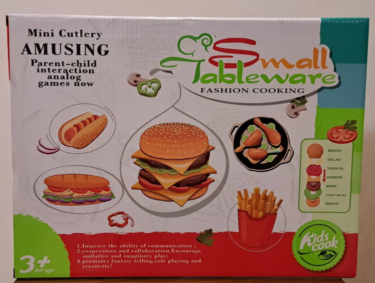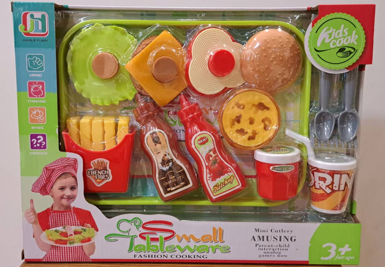 این مجموعه بازی متشکل از یک عدد سیب زمینی، ، سس، دو عدد لیوان و یک همبرگر قطعه قطعه شده است که شرایط لازم برای بازی فرزند دلبند شما تا ساعات طولانی را فراهم می کنند.