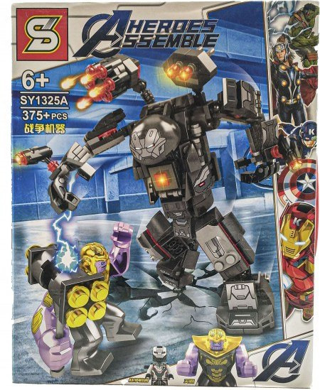 از لگو های برند معتبر اس وای SY ، لگو نبرد هالک باستر Hulk Buster شخصیت وارماشین Warmachine علیه تانوس Thanos با +375 قطعه سری بازگشت قهرمانان Heroes Assemble با دو مینی فیگور تانوس Thanos بزرگ و وارماشین Warmachine