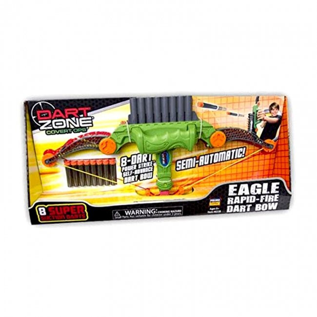 تیرکمان دارت تیر اسفنجی یک تیرکمان اسباب بازی با تیرهای از جنس اسفنج نرم است که دارای کمترین خطر در بازی است. این مجموعه علاوه بر تیرکمان هشت تیر وجود دارد که می توان آنها را در درون تیرکمان قرار داد و با کشیدن سیم کمان به عقب می توان تیر را در حدود ۲۰ متر پرتاب کرد. البته این متراژ برای شرایط عالی است، در عمل این برد کمتر است. ابعاد این اسباب بازی حدود ۶۲ * ۲۷ سانتی متر می باشد و در یک بسته بندی جعبه ای باز قرار گرفته است که می توان براحتی آن را لمس کرد. تیرها نیز درون جعبه با طلق محکم شده است. رنج سنی مناسب برای بازی با این اسباب بازی ۶ سال به بالا می باشد. هم دختران و هم پسران علاقه مند به این اسباب بازی می باشد.