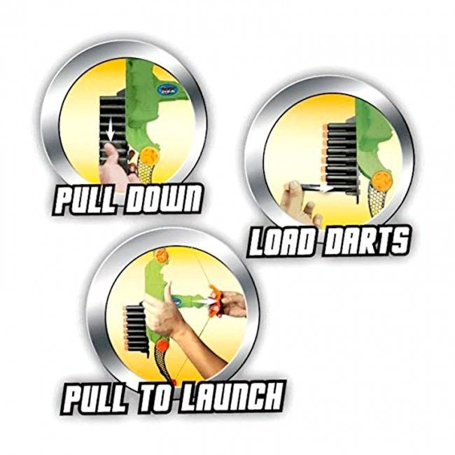 ابتدا تیرها را در درون محل مناسب خود قرار دهید، هر هشت تیر باید در محل مناسب قرار بگیرند و برای مسلح کردن تیرکمان باید با دست تیر ها را به پایین کشید تا محل مناسب خود قرار بگیرد. با کشیدن کش به عقب و گرفتن کمان در دست می توان تیر را پرتاب کرد. البته باید مراقب اطرافیان خود باشیم.