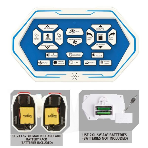 - دارای دکمه کنترل ربات - دارای دکمه برنامه ریزی ربات - دکمه انجام حرکات دمو - دکمه پخش موزیک - دکمه پرتاب تیر