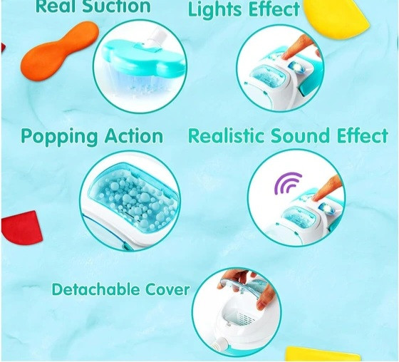 طراحی واقعی، لوله خرطومی و دسته قابل حمل، حس یک جاروبرقی واقعی را برای کودکان شبیهسازی میکند. این محصول دارای افکتهای صوتی و نوری است و با باتری کار میکند. مناسب برای کودکان 3 سال به بالا و ساخته شده از پلاستیک مقاوم و ایمن است.