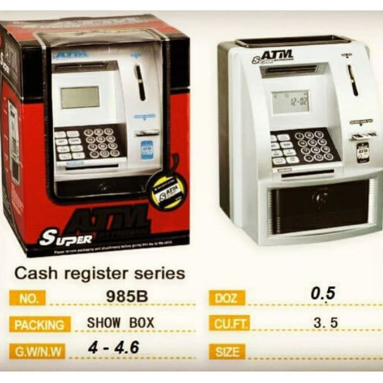 اسباب بازی خودپرداز بانک ۹۸۵B : یک دستگاه ای تی ام و یک سرگرمی جذاب برای بچه هایست که به بازی های فروشگاهی و خرید و فروش علاقه دارند. با این اسباب بازی کودک شما مفهوم خرید، فروش و پس انداز را میآموزد.
