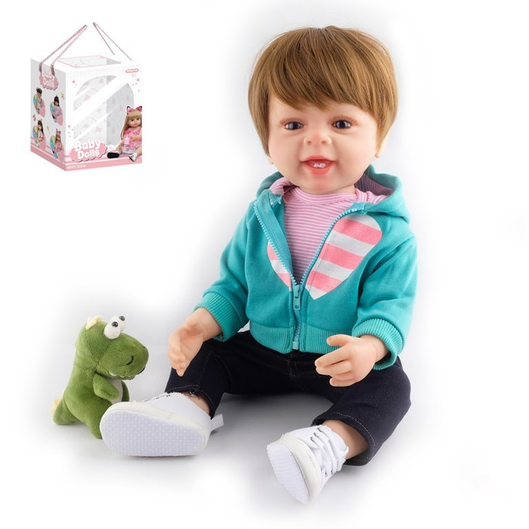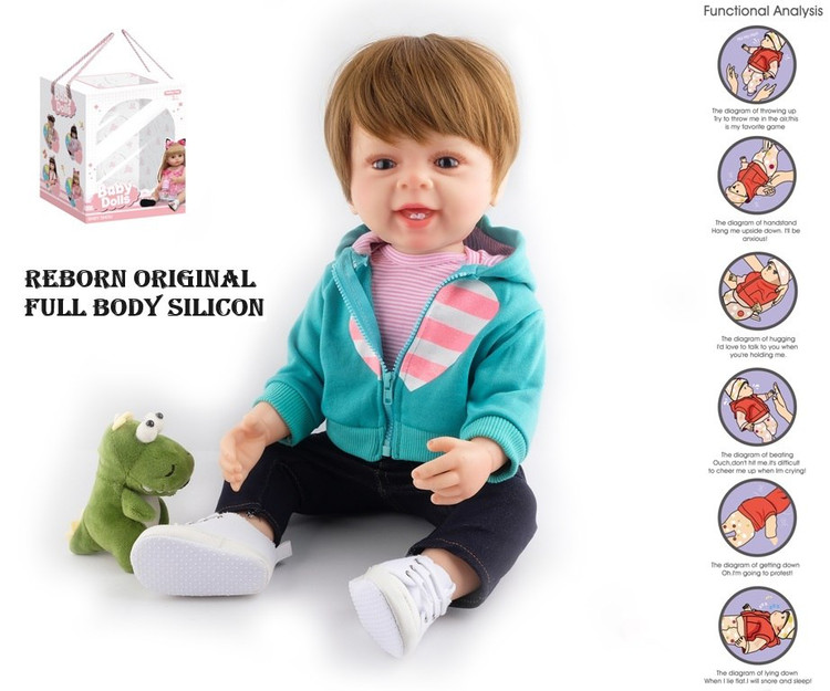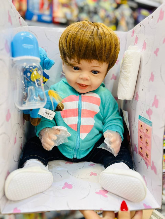 عروسک ریبون پسر اصلی بدنه تمام سیلیکونی با چشم های شیشه ای سایز 55 CM