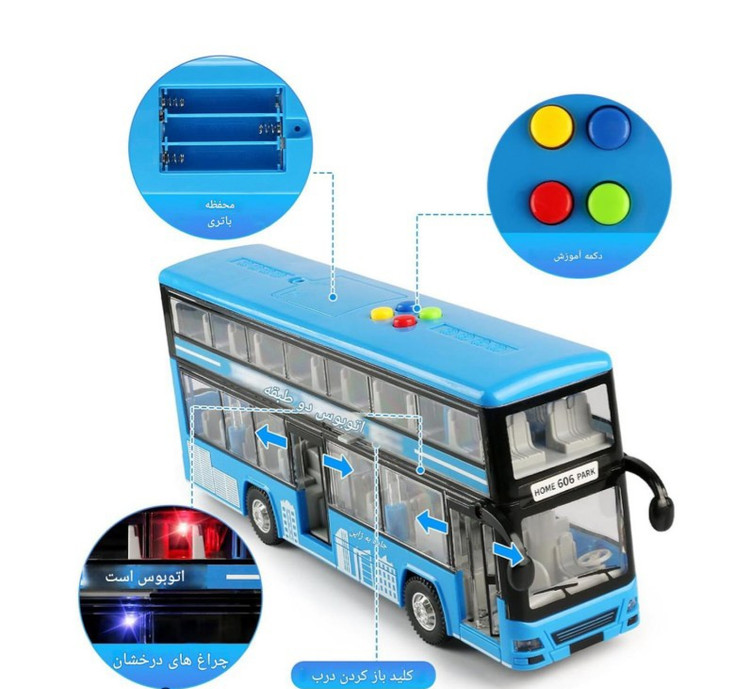 اسباب بازی اتوبوس دو طبقه چراغدار آیتم 980A