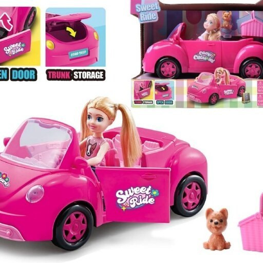 عروسک باربی مینیاتوری با ماشین صورتی