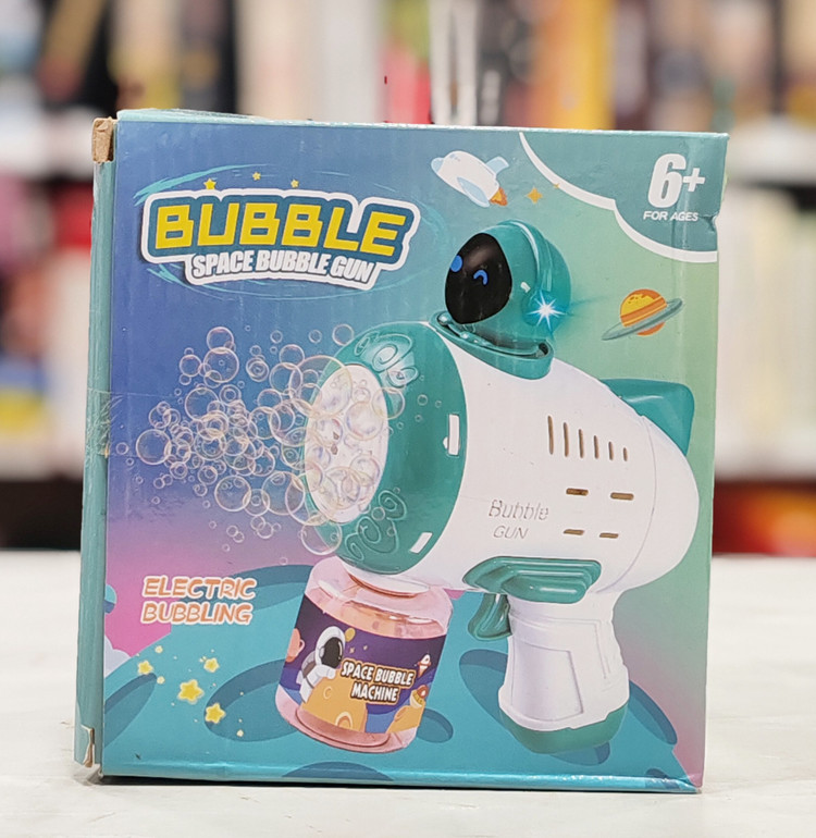 اسباب بازی تفنگ حباب ساز وارداتی این محصول طرح فضایی و برای اجرا نیاز به باتری قلمی دارد که جدا گانه باید تهیه شود این محصول یک بطری 30 میلی لیتر کوچک داخل جعبه دارد