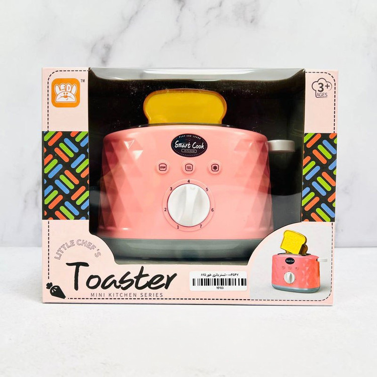 این محصول از جنس پلاستیک فشرده با کیفیت ساخته شده است و دارای دو قطعه نان تست می باشد. در کنار آن یک اهرم قرار دارد که با پایین کشیدن نان ها با داخل رفته و با بالا دادنش نان از درون تستر خارج می شود. دکمه ها و عقربه روی تستر نمایشی هستند و به کودک در راستای شبیه سازی بیشتر محصول کمک می کنند.