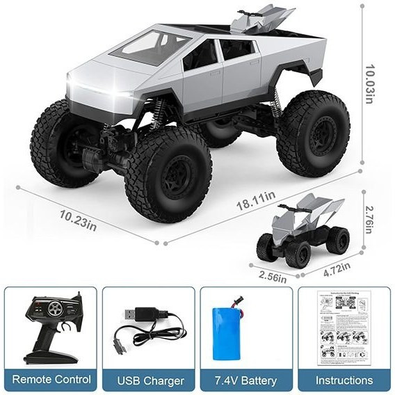 شرکت تولیدی MZ که با ماشینهای کنترلی اسباب بازی و با کیفیت خود معروف است اینبار به سراغ تولید مدل تسلا رفته است . ماشین کنترلی بزرگ تسلا MZ با ابعاد نیم متری خود یک غول چهارچرخ واقعی است! دو موتور براش R280SC وظیفه حرکت این ماشین کنترلی بزرگ را به عهده دارند و برای چرخش چرخهای جلو نیز از یک موتور براش دیگر که به کمک گیربکس چرخیدن چرخها را آسان میکند استفاده شده است . این ماشین کنترلی با داشتن لاستیکهای لاستیکی با چسبندگی بالا و سیستم چهار چرخ متحرک (4WD)، قادر به عبور از شیبهای 45 درجه و حرکت در سطوح مختلف مانند چمن، شن، گل و مسیرهای سنگی است. این کامیون کنترلی مجهز به چراغهای LED جلویی است که علاوه بر افزایش جذابیت ظاهری، تجربه رانندگی واقعیتری را برای کودکان فراهم میکند.مشخصات کلی محصول
