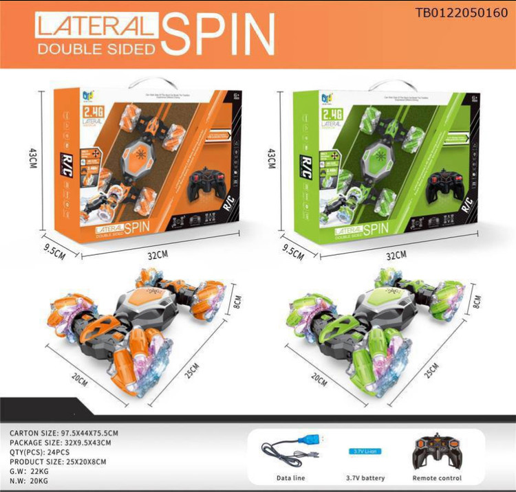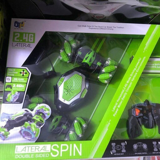 ماشین کنترلی تایر کپسولی دو کنترله (دو ریموت) Lateral spin کد 666-21 سبز رنگ