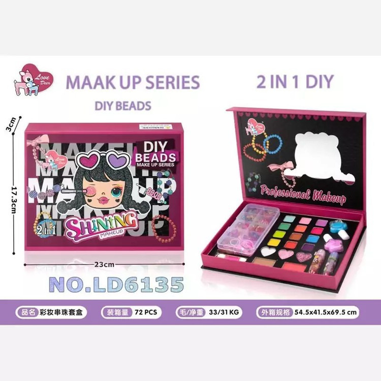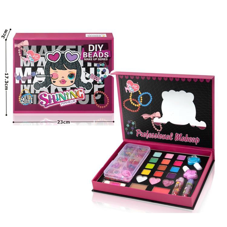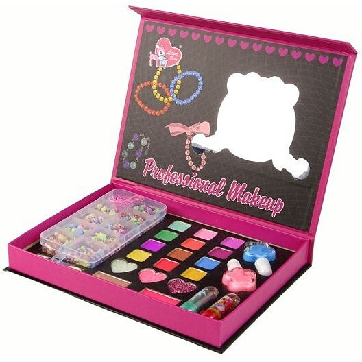 این مجموعه کیت آرایش و جواهرات 2 در 1 یک اسباببازی کامل برای هنرمندان جوان است. این مجموعه خلاقانه به کودکان امکان میدهد تا هم از طریق ایجاد آرایش و هم از طریق طراحی جواهرات خود، خلاقیت خود را بیان کنند. این مجموعه شامل ۱۲ رنگ مختلف سایه چشم و ۳ رنگ با اثر گلیتر، یک برنزهکننده و یک گونه، ۲ رژلب با رنگهای مختلف، ۲ پلت سایه چشم و ۲ نوع رنگ ناخن میباشد.