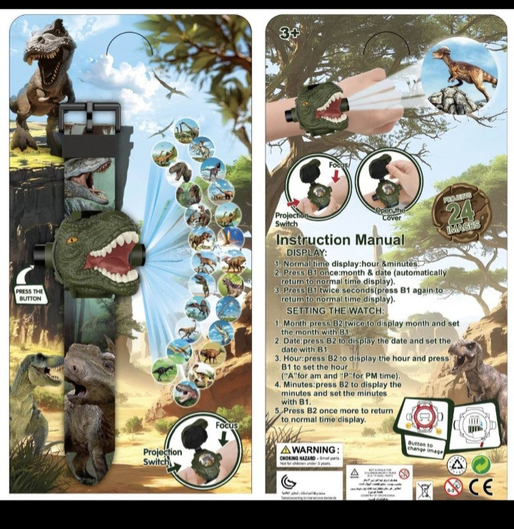 ساعت مچی دیجیتال پروژکتوری طرح دایناسور 24 اسلایدی