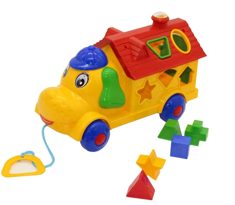 چهار آموزش در یک اسباب بازی بازى و یادگیرى شکل ها بازى و آموزش رنگ ها بازى و خواندن اعداد ماشین بازى کودك اشکال رنگى را داخل سگ شادى انداخته ، بطور همزمان نام و رنگ این اشکال را مى آموزد و مهارت هاى فکرى و منطقى خود را پرورش مى دهد. سگ شادى داراى 4 چرخ غلتان و بى خطر است و این امکان را به کودك مى دهد تا به راحتى آن را حرکت دهد