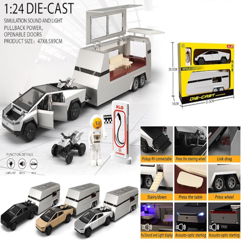 ماکت فلزی ماشین کمپر تسلا با لوازم چراغدار موزیکال مقیاس 1.24 کد 92326ـ6