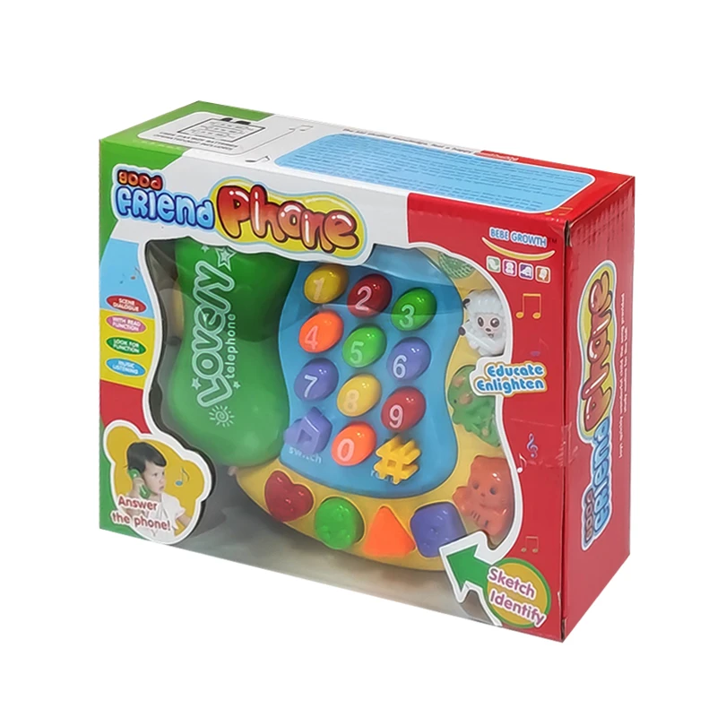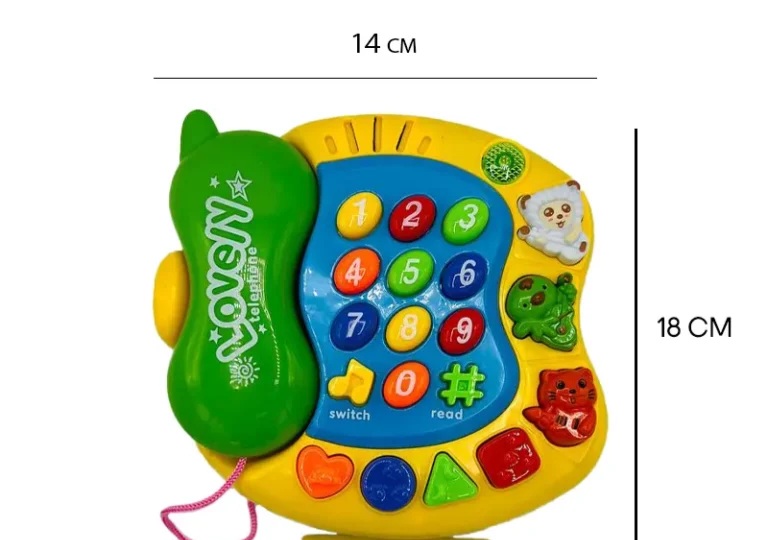 اسباب بازی موزیکال طرح تلفن چندین مدل تنوع و کارایی دارد. با هر بار دکمه فشردن آن ها اعداد انگلیسی را به کودک آموزش میدهد. همچنین هر دکمه موزیک های شاد بچگانه و متنوعی دارد. دکمه های شکل حیوانات صدای حیوانات به همراه تلفظ انگلیسی آن ها را میگوید. همچنین 4 دکمه که شکل اشکال هندسی نیز میباشد هم کارایی های مشابه دارند. یعنی هنگامی که کودک آن را فشار دهد اسم اشکال هندسی به انگلیسی را میگوید.
