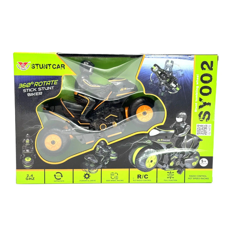 موتور کنترلی STUNT CAR SY002 ساخت شرکت SONG YANG TOYS کشور چین یک موتور با طراحی زیبا و کیفیت ساخت خوب می باشد. این موتور قابلیت چرخش 360 درجه را دارد و همچنین تایر آن بصورت افقی و عمودی قابلیت چرخش دارد. این موتور یک کنترل زیبا و خوش دست با برد 2/4 گیگا هرتز دارد که با دو باتری قلمی 1/5 ولت کار می کند. موتور با یک باتری 3/7 ولت کار می کند که جز اقلام همراه موتور قرار دارد.