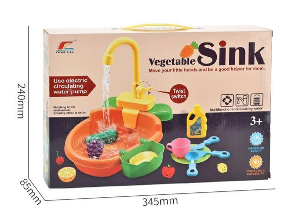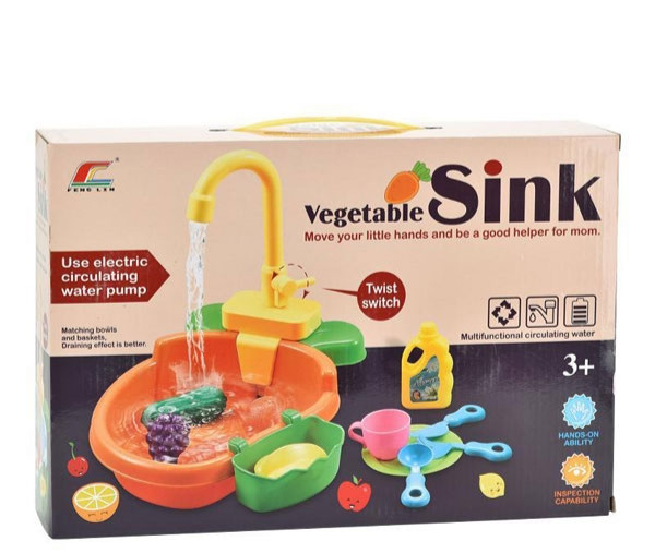 اسباب بازی سینک ظرفشویی آیتم 6061 یک وسیله زیبای اسباب بازی به شکل سینک ظرفشویی است که قابلیت پمپاژ و جریان آب از مخزن به شیر و سپس سینک را دارد. آب را درون مخزن ریخته و شیر را به کمک اهرم کناری آن باز میکنیم تا فعال شده و آب از آن خارج شود، سپس کودک میتواند ظروف کثیف یا میوههای موجود در مجموعه را بشوید. این مجموعه در کل یک وسیله جذاب و سرگرم کننده برای کودکان خواهد بود که جنبه آموزشی نیز دارد.