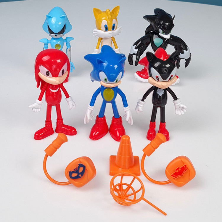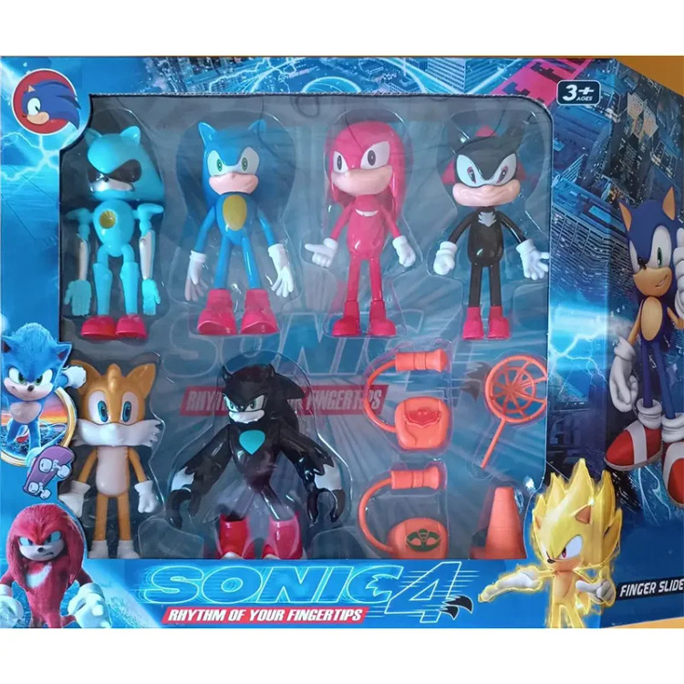 مینی فیگور 6 عددی سونیک برای طرفداران سونیک! این اکشن فیگور 6 عددی سونیک به همراه 4 عدد اکسسوری از جنس پلاستیک با کیفیت و با دوام است که برای بازی و نقش پذیری کودکان 3 سال به بالا مناسب است. این فیگور ها قابلیت حرکت دست، پا و سر دارد و مناسب هدیه دادن است