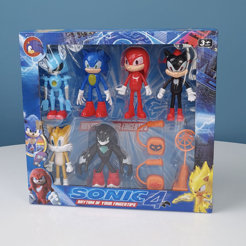 مینی فیگور 6 عددی سونیک برای طرفداران سونیک! این اکشن فیگور 6 عددی سونیک به همراه 4 عدد اکسسوری از جنس پلاستیک با کیفیت و با دوام است که برای بازی و نقش پذیری کودکان 3 سال به بالا مناسب است. این فیگور ها قابلیت حرکت دست، پا و سر دارد و مناسب هدیه دادن است