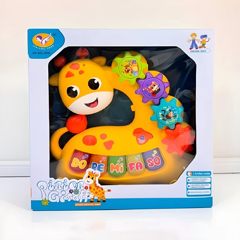ارگ موزیکال چراغ دار طرح زرافه با چرخ دهنده های دست ورزی اسباب بازی jialegu toys