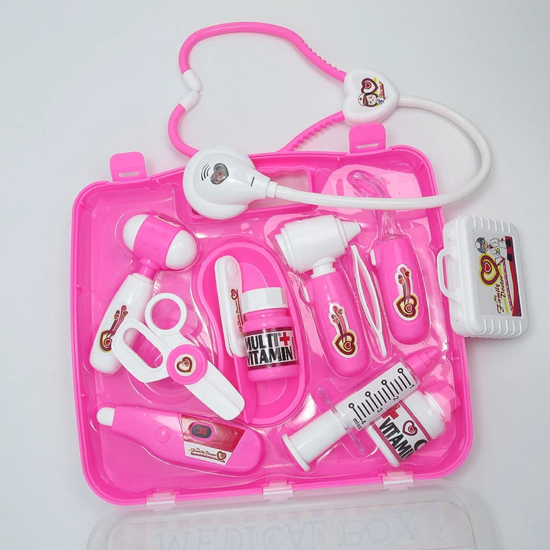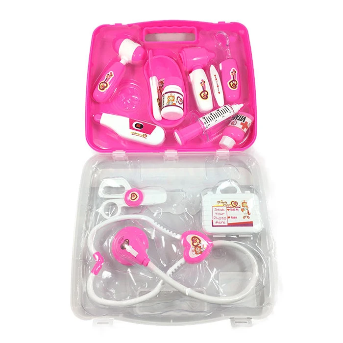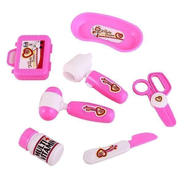 وسایل اسباب بازی موجود در بسته بندی این محصول شامل: کیف حمل – گوشی پزشکی با ضربان قلب – چکش معاینه بیمار– چراغ قوه معاینه گوش – دماسنج با نمایشگر – دستگاه قند خون با نمایشگر – آینه معاینه دندان بیمار و سرنگ است.
