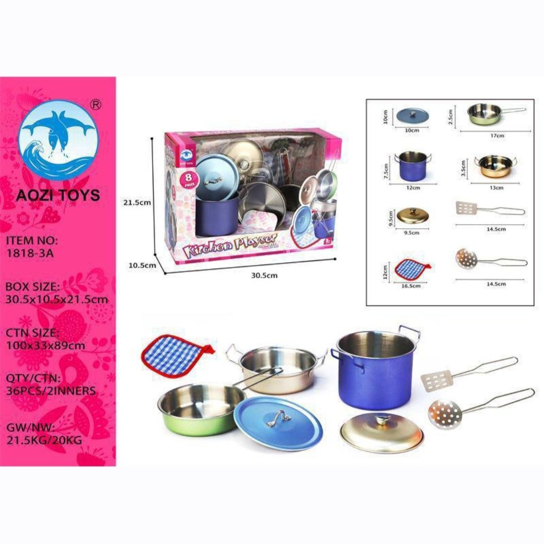 اسباب بازی ظروف استیل آشپزخانه ۸تکه ایتم ۱۸۱۸رنگ خاص