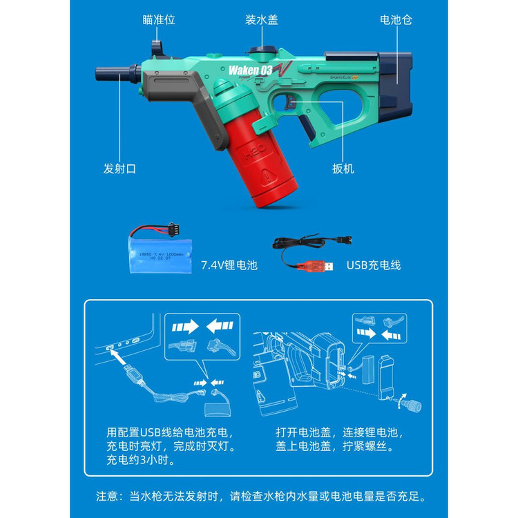 به هیچ وجه باتری این تفنگ آبپاش را داخل آب قرار ندهیدقابل شارژ