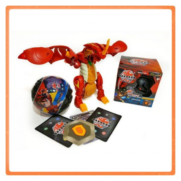 توپ چرخنده نبرد باکوگان که ترانسفورمر ( تبدیل شونده) نیز است، قطر 9 سانت و اندازه شخصیت یا فیگور آن 17 سانتی متر می باشد. داخل جعبه یک کارت مغناطیسی است که توپ شما روی آن که قرار بگیرد تبدیل به یک اژدها یا یکی از شخصیت های نبرد جنگجویان باکوگان خواهد شد.