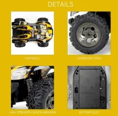 پرقدرتترین ماشین آفرودی، دارای چهار چرخ بزرگ و 4 چرخ کوچک و کمکی، بسایر سریع و پرقدرت، دارای کنترل با 20 کانال ارتباطی، باتری لیتیوم یونی و قوی، دارای رقص نور، پخش موزیک، قابلیت حرکت بر روی سطوح خاکی، سنگلاخ، ماسه ای، چمن، قابلیت تنظیم صدا، حرکت در پشت و رو، تغییر ناگهانی مسیر و بسیاری دیگر.