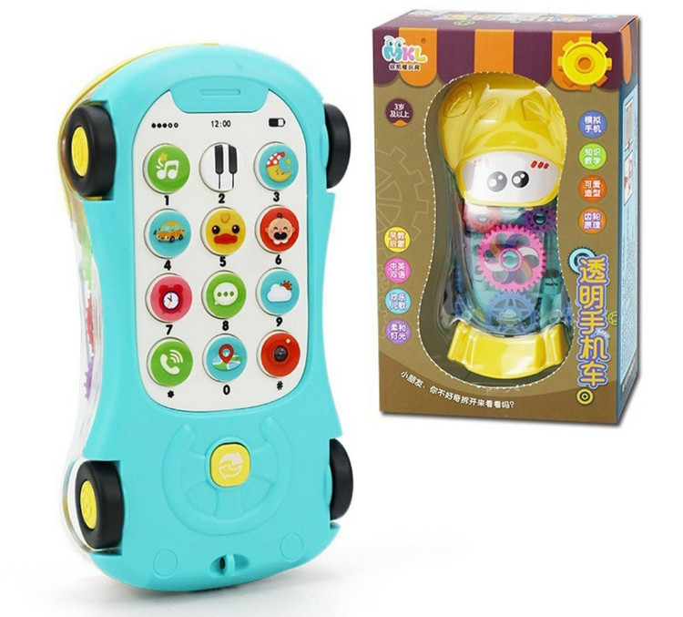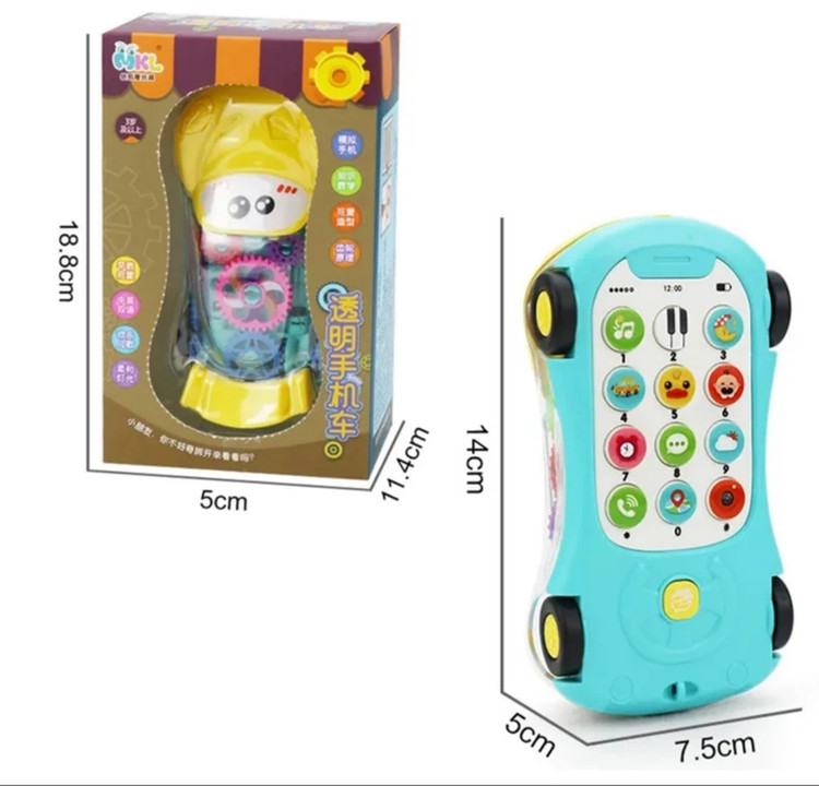 تلفن و ماشین چرخ دنده ای موزیکال یک اسباب بازی زیبا و سرگرم کننده برای کودکان است. این تلفن و ماشین چراغ هم دارد و می تواند به ماشین محبوب کودک تبدیل شود.حالت بی صدا و هم چنین حالت با صدا و موزیک، چند موزیک متنوع و زیبا، بدنه شفاف و دیده شدن چرخ دنده ها و ادوات داخل ماشین از جذابیت های دیگر این تلفن و ماشین بامزه است. از امکانات جالب این تلفن انتخاب پخش شدن موزیک و یا قطع شدن موزیک با استفاده از 12 عدد دکمه در پشت تلفن توسط کودک شما است .