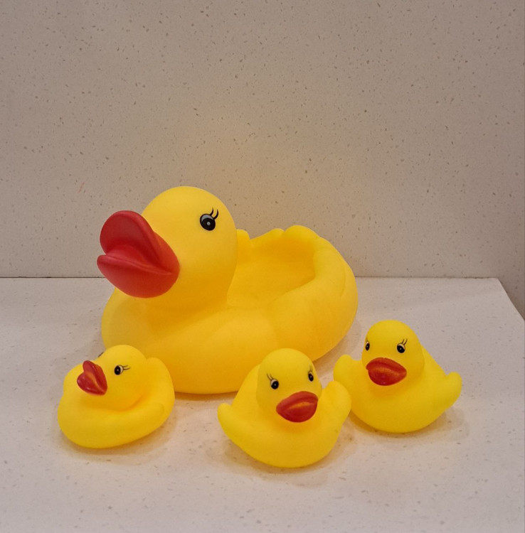 عروسک حمام مدل اردک سوت دار بزرگ مجموعه 4 عددی